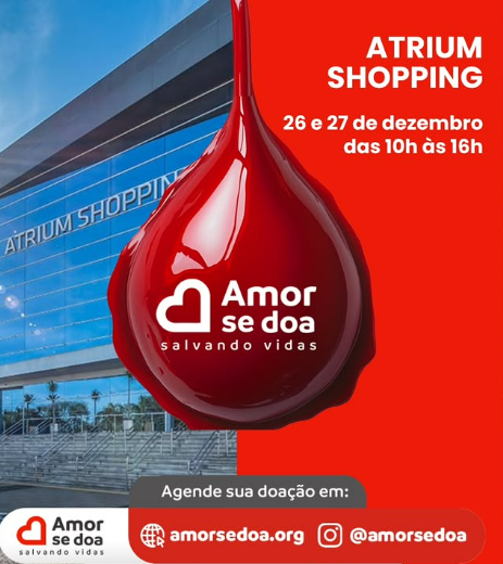 Para encerrar o ano com um gesto de solidariedade e ajudar a salvar vidas, o Atrium Shopping (administrado pelo Grupo AD), localizado em Santo André, recebe nos dias 26 e 27 de dezembro a ação de doação de sangue promovida pela ONG Amor Se Doa. A mobilização acontece das 10h às 16h e convida a população a participar de um ato simples, seguro e essencial.