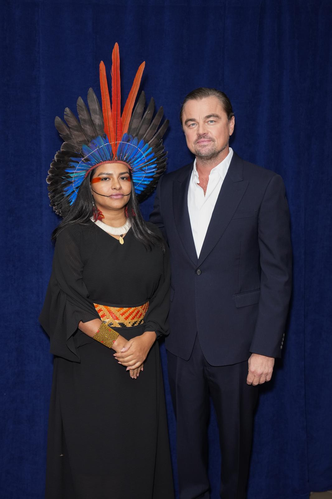 Juma Xipaia e Leonardo DiCaprio no Tribeca Film Festival | Imagem: Divulgação