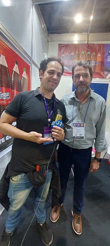 Ricardo Marujo (Jornal1, Canal 8 Mais e Tv Guarulhos ) visita o estande da Bebidas Conquista e entrevista