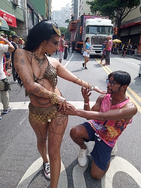 Diferente de anos anteriores, a energia do trio de Sebah Vieira encontrou na Rua Augusta o cenário perfeito para a diversidade. Com um repertório que atravessa gerações — do axé clássico aos hits atuais — o bloco manteve a animação lá no alto durante todo o percurso. Sebah, conhecido por sua versatilidade como ator e produtor, comandou o microfone com a maestria de quem domina o carnaval paulistano há anos.